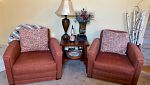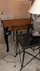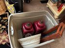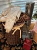 Lots of kid toys, furniture, home decor, and house hold items. White bedroom dresser, oak bedroom dresser with hutch, dark wood master bedroom dresser, cream accent chair, 2 living room chairs, coffee table and end table, mud room bench, couch with pillows, Tv, rattan chest, black desk, black desk chair, inversion table, garage shovels, rakes and shovel, Christmas garland, outdoor furniture, lamps, pillows, tall dark wood jewelry chest, guitar and case, 35 millimeter camera and zoom lens. Green machine carpet cleaner, tall tree in wicker basket, pull up bar, weed eater, college gray futon, white Northface coat, faux fur leopard coat, electric piano keyboard and bench, camping bin full of tent and blow up mattress, glass round coffee table, small charcoal grill, porcelain tea set from London, Tiffany vase, Waterford toasting glasses, laundry baskets, kitchen aid blender, large KU chair, white wall desk.