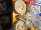 Lots of vintage dishes and kitchen items. Books, clothes, miscellaneous household