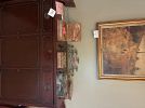 Lots of furniture (couch, cabinets, chairs), crystal, Christmas homemade manger, wool rug, fireplace tool set,