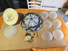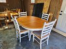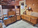 Includes: 7-piece dining table and chairs, 5-piece kitchen table and chairs, Power recliner loveseat, power recliner oversized leather chair, manual recline armchair, Stainless Steel Gas Oven/Stove, Oven vent, Black top freezer/fridge, wooden sideboard, wooden shelving unit, Bedroom dresser and dresser with mirror, washer & dryer, vanity and sink + fixtures, bathroom wall cabinet, 4 x interior doors, 6 sets of window shutters Small items: Mirror, glass light covers, exterior light, rugs and more.
