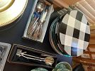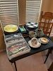 Lenox holiday china, silver serve ware, Tiffany and Waterford crystal, vintage glass and pottery, Pyrex, Calphalon
