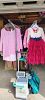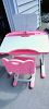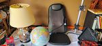 Girls desk and chair set, wood panel red wagon, vintage 8' wood toboggan, desk top 2 monitor holder, Snailex back massager, red bounce house, lightweight wood shelves, books and games for all ages, bread maker, household items. Some clothes. Treasures to be found. Deals to be made!