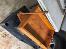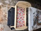 Old wood bench, wood ammo box made in Russia, various pieces of ironstone, two vintage wood totes, 1930's doll cradle, miscellaneous small wood boxes, antique fence puller, jewelry, baseball cards, ephemera , small furniture, wood shelves, outdoor furniture, lots of old stuff and much more.