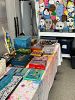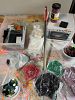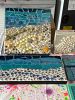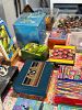 Glass and shell mosaics, clay artwork, decorated cigar boxes, earrings, licorice leather bracelets, and supplies. Also, other decorator items for your household. Large antique trunk, Silk covered armchair, designer rug! See pictures! More to come!