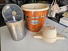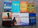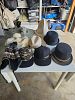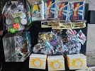 various items, books, pokemon items, kitchen items, household items, diving fin, painting easel, dog crate, dog collars, hats, curtains, queen bed, coffee table, drink glasses, toaster, air purifier, lamp, and more