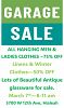 Sale at back of of Church. Lots of New Items. All hanging man and ladies clothes 75% off. Linens and winter clothes 50% off. Lots of beautiful Antique glassware for sale.
