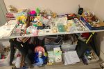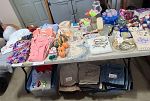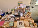 Vintage glassware, costume jewelry, figurines, reading glasses, picture frames, children’s books, seasonal decorations, unfinished wood items, craft supplies, handmade crafts, clothes, wedding decorations, vases, candle holders, garland, serving trays, cake plate, cupcake corers, hundreds of 25¢ items, and more.