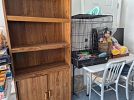 A lot of furniture (twin and queen bed frames, kitchen table and chairs, stools, cookware, small electronics, bookshelves, file cabinet, desks, couches) & never used items, New items weekly, 30% of sales benefit one of three charities