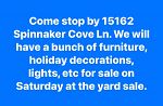 Good morning everyone so we are having our very last day for our Stoneybrook West gated community sale and there’s several of us are out here , check out the picture with different addresses for you to visit while you’re here on the community sale , until 2 PM today. Our particular yard sale is three families and we are doing filler bags for just $10. There’s only a table and a few things that are excluded from filling that bag, but as you can see from the pictures, there’s a lot to choose from so we hope to see you soon soon and don’t forget to stop by at 15308 Amber Bean Blvd., WinterGarden, FL☺️👍