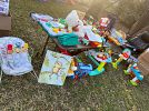 Everything’s out back, baby toys, clothes, shoes, kitchen supplies and home goods.
