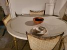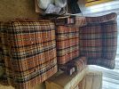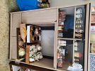 Upright piano , upright freezer, retro cream color sectional, colonial style dining set, matching hutch, entertainment centers, dressers, vintage but new Avon products, bar and 2 matching stools, antique sewing cabinet and machine, retro red kitchen table, white/gold kitchen set. Dish sets, glassware barware, sporting goods and collectibles.