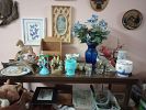 Lots of vintage items.Large wood custom made desk, wood shelves, handmade baby doll cradles, handmade childrens wood chairs, wood tables, Large Wood Kitchen Table, Custom made Wood filing cabinet, Small wood chest of drawers, Glassware, Knicknacks, craft supplies, sewing items, vintage sewing machine, vintage baby dolls, framed art, books, (a lot of) Agatha Christie books, Vintage Happy Meal toys (some opened, some NIP,) Costume Jewelry, wicker items, Collectable Tins, Vintage casino items, vintage Lawn Bowling set, Lawn Bowling Pins.Roll top desks,Christmas decor, christmas Crafts, Halloween Decor and crafts,