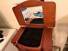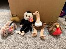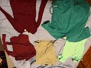 Lots of clothes, household items, shoes, jewelry, standing shoe racks, exercise equipment, and more! Ty Beanie babies, an oak hutch, a standing jewelry box.