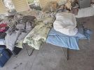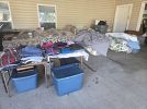 Tools,comforters,fishing,puzzles, books,pair of rocking chairs,coffee table,toys,leather craft tools,framed pictures,shoes,sneakers,men's shirts,pajamas,lamps,etc