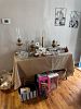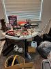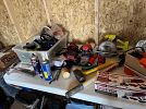 All kind of tools, paint rig, antique furniture and glassware, kitchen items and dishes. Clothes, patio set , jewelry, refrigerator, bedding, lots, garden tools and lots of miscellaneous!