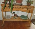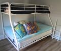 Lovely designer sleeper-couch, gently used • Casual dining table and rattan upholstered chairs • Premium electric recliner with battery back-up • Coffee table • White wicker end-table and small cabinet • Beautiful, very tall cherry 4-poster bed including mattress and topper • Metal bunk beds, bottom double, top twin including mattresses, rarely used • Lamps • Small Westinghouse Roku TV, nearly new • Natural wicker console • Natural wicker “trunk” with hinged lid • 3-drawer filing cabinet • Assorted dinnerware, glassware, kitchenware • Krups cappicino/espresso machine, all attachments • Le Creuset coffee mugs • Pots and pans • Wine racks (2), wooden, 96-bottle capacity • Stainless-steel still • Small appliances • Books • Esquisite etching by Hamilton Hamilton, 1890, signed, original click • Pelican prints • Haitian dancers, original oil painting, Haitian steel-drum wall art, 16” dia. • Framed etching, woman reclining • 6-ft. Fiberglass ladder • 2-step and 3-step ladders • Assorted tools, yard tools, hardware and more...