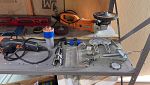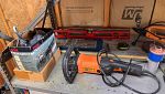 Tools both power and hand. Small appliances, games, books, large kites, tool box, wooden tool chest. This is the contents of a garage and shed of a very curious and handy man now deceased. A little bit of everything.