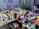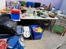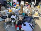 Dishware, cookware, vases, piano, dryer (unsure if it works), trinkets, decor, computer monitors, twin bedding, California King bedding, small rugs, Penny Board, binders, jewelry, reusable bottles, womens' clothes (sizes M, 5-7), women's shoes (size 6, 7), picture frames, paintings, kettles, sake set, kitchen utensils, wok, dog supplies, beach chairs, foot massager, heating pad, small planters, nursery pots, outdoor table, etc.