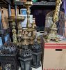 Assorted Asian decor items (another of her collecting passions.) Brass things and Turkish style lanterns.