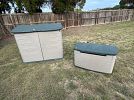 Garden Equipment, tools & toolboxes, Rubber Maid storage boxes, kitchen items, kingsize bed, several China sets & antique crystal.