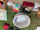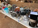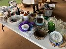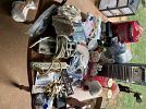 Kitchenware, clothes of all sizes, Christmas and Halloween decor, bedding, board games, shoes, framed pictures and paintings, children’s toys, a tv, lots of miscellaneous items