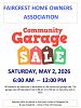 The Faircrest HOA in Menifee will host a community garage sale on Saturday, May 2nd from 6:00 am to 12:00 pm.