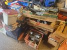 General – outdoor table and chair set (including umbrella), Noritake dish set (tan), Ikea desk, set of glasses, carry- on luggage, purse and women’s clothing, small ice chests, motorcycle helmet, karaoke machine, set of 6 tiki torches, boxes of nails, gas generator, Skil Saw and drill, misc Simpson Strong Ties, corded leaf blower.