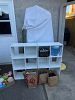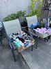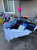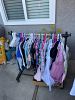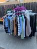 Woman’s clothing: sizes 4-8. Shoe sizes 6.5-8. Dresses, jeans, active wear, tops , sweaters and more. TV, shelving units, household items and more.