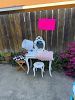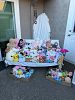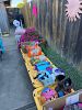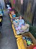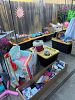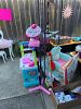 Tons of girls items. Vanity table and lamp, stuffed animals, dolls, play doh ice cream machine, dresses, clothes and shoes, purses, backpacks, toys, games balls and two scooters.