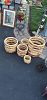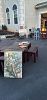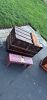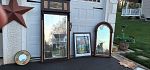 Basement clean out - artwork, coffee table, pier one entry table, matching short cabinet/book shelf, decorative mirrors, baseball hats, surround sound system, glass stereo table, games, dishes, old chest