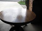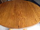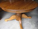 1- 48" round oak table with 2- 24" leaves expanding to 6 ft oval or 8 ft oval. (1980's)