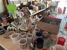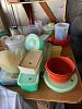 Tupperware, crystal, toasters, hand mixers, hand crocheted items, vintage dresser scarves, hand stitched items, bakeware, older kitchen gadgets, set of corelle dishes, knickknacks, christmas decor, kitchen linens.