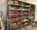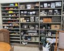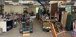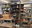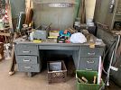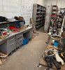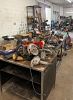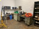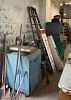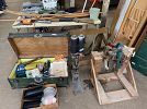 2 lathes, 2 drill presses, band saw, 10 4-drawer file cabinets, 10 heavy duty metal desks, LOTS of metal shelving, hand tools, camping supplies , pop-up canopy, portable ******** game, photography equipment, vintage audio equipment,