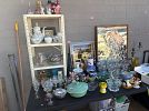 Vintage antiques and collectibles - jewelry purses scarves shoes (men’s and women’s) - large mirrors, lamps/shades, artwork, cat tower, books, glassware