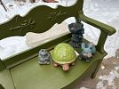 2 CHAIRS – ROCKING CHAIR - & COFFEE TABLE, MODERN PATIO LOVESEAT W/ CUSHIONS, SEVERAL SHEPHARD HOOKS, BIRDHOUSES, OUTDOOR CHAIRS, LAWN ORNAMENTS, WIND CHIMES, SM. ROUND GLASS TOP PATIO STAND, PICNIC COOLERS, PICNIC BASKET, SEASONAL YARD FLAGS, SM. CERAMIC BIRD BATH, TRASH CANS, LOUNGE CHAIR, GARDEN TOOLS, GARDEN HOSE, OUTDOOR FOLDING CHAIRS, & MUCH MORE!`
