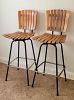 2 Beautiful Vintage Mid-Century Modern Slatted Wood Bar Stools
