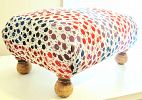 One of a Kind Joyful Antique Poofy Footstool w Vintage Fabric
