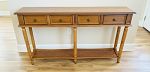 Long wood entry/sofa table with drawers + lower shelf.
