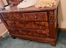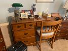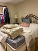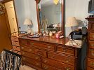 This house is full of great quality furniture, households, jewelry, tools, linens, clothing and more: Excellent condition vintage (1990) Four piece cream color family room sofa, loveseat, chair & ottoman by Chateau D’Ax in Milan Italy(1990), six piece Retro (50’s / 60’s) Mid Century blonde bedroom set (headboard bed frame, full size mattress, dresser with mirror, chest, nightstand), highly collectible antique dresser burl wood veneer with marble top, seven piece Lexington bedroom set (twin headboard with mattress, lingerie dresser, chest, nightstand, dresser with mirror), queen bed with headboard, frame and mattress, floral couch, end tables, corner tv stand/hutch cabinet, newer style TV stand, retro chrome table, tiled top end tables, Empire Furniture Corporation (Tennessee) maple hutch, Ethan Allen dining room chairs (4), dining room table with two leaves & pads, glass and wrought iron coffee table with matching sofa table, Pennsylvania House small side dresser, Pennsylvania House drop down end table, excellent condition 70’s/80’s white dinette oval table with four upholstered swivel chairs on casters, Samsung 43” TV and TV stand, Samsung 26 TV, Winners Only oak two drawer file cabinet, Made in USA Early American desk, small side chair, drop leaf table in good shape by The Jefferson Woodworking Company (Louisville Kentucky), two La-Z-Boy recliners, woven wood slatted screen/room divider, vintage dinette table, beautiful vintage Howard Miller Sandringham wall clock, variety of lamps, antique Kestner Bisque Hilda doll, antique Madam Alexander Bride doll, Hamilton Collection vintage style doll, vintage accordion folding wood rocking baby doll cradle, costume jewelry including Chico’s collection, Don Drumm jewelry pieces (necklace and bracelet), Loni Anderson signed black & white photographs, variety of lamps, and pictures, vintage hand-cast dimensional fiber art piece from the 80’s, glassware including Fenton glass and depression glass, fine china sets including Johnson Brothers and Royal Doulton figurines, Coalport figurines, animal figurines, religious figurines, knickknacks, thimble collection, pottery, kitchenwares, Holmes & Edwards Silver-plated flatware set Spring Garden pattern, Corelle dishes, knives, utensils, kitchen household items including Pyrex dishes, large set of Farberware cookware, Tupperware, small appliances, unique bowls and serving pieces, milk glass, colorful glass, pottery, Robinson Ransbottom 8-gallon stoneware crock, two singer sewing machines in cabinets, lots of sewing notions, shelving, clothing and coats, vintage to modern furs, one of a kind hand sewn costumes, shoes, Brighton, Vera Bradley & Coach purses, Coach gloves & accessories, beautiful vintage hats, decorative holiday, Barberton memorabilia and Barberton yearbooks, sport books, electronics, baskets, office supplies, variety of household and personal products, linens, towels, assortment of hearing aide devises, garage items, garden tools, card table and chairs, two large heavy duty clothing rack rounders and more!