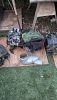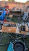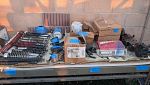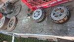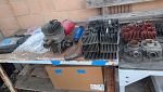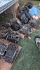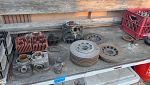 Cylinders, wheels/rims, engines, swing arms, exhausts motorcycle frames, bike wheel stands, clutch assemblies, and a lot of miscellaneous motorcycle stuff