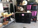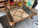 Rolling storage cart with granite top. Coffee table with beveled glass top and other small furniture.