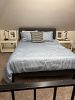 Couch, art, dishes, king-size bed, full-size bed, bed linens, some small kitchen appliances, dresser, coffee table, tv, books