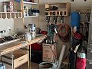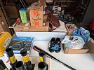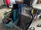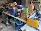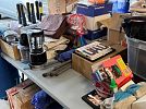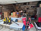 Estate sale with variety of tools, sporting goods, household items and some furniture.