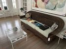 Two bedrooms - one with antique circa 1900 American quarter sawn oak furniture. Antique leaded glass panel barrister bookcases, thousand plus antique / vintage / contemporary books including first edition books. Sitting area with leather Chesterfield sofa, antique burl wood armoire, antique rosewood armoire, Victorian pedestal base oval hall table, additional antique barrister bookcase, oak leaded glass door curio cabinet, CDs / DVDs. Large family room with upholstered sofa and pair of upholstered armchairs, antique furniture, large drafting table / work desk, many more books including coffee table / design / art and architecture books