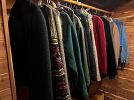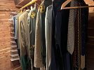 Cedar closet of vintage and designer clothing, vintage bolts of fabric including Brunschwig et Fils, unopened gift items like toys and decorative items, framed artwork / original artwork / quality frames / framed antique prints, tools, gardening items, household supplies, baskets