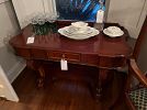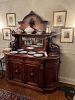 Dining Room - Victorian era Neo Classical 19th Century sideboard, assorted antique and vintage porcelain, assorted decorative items, silver plate, collection of framed antique hand colored professionally framed engravings, stemware, crystal