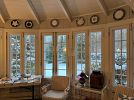 Breakfast Room - Large antique pine wood cupboard, kitchen island butcher block top, assorted china and decorative items