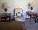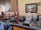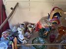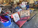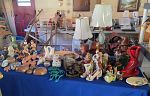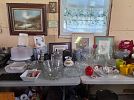 Kitchen items, lamps, several end tables, collectors plates, native American items, Vera Bradley pocketbooks, linens, tables, chairs, lots of silverwear, dolls, Ethan Allen bed, dresser and mirror nightstand, pine dresser and mirror, brass like bed, Winthrop desk, vintage mirrors, odd pictures. Something for everyone.
