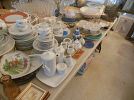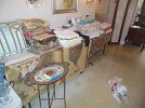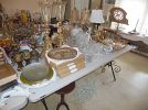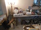 LARGE COLLECTION 0F ASSORTED OF HIGH-END ITEMS ART GLASS, SOME COSTUME J, HIGH END CRYSTAL, ASK ABOUT STERLING, DISHES, NUMEROUS PIECES OF OLD ART WORK, KITCHEN WARE, NUMEROUS CLEANING SUPPLIES FOR PRACTICAL USE, POTS, PANS, SMALL DINNING TABLE OLD STYLE, CHINA CABINET OLD STYLE, SMALL PIECES OF NICE FURNITURE, SILVERWARE, TOOLS, LOAD SOF STUFF IN THE HOUSE ANDE IN THE GARAGE.
