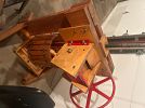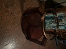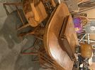 Dining table with 6 chairs, treadle sewing machine, apple cider press, assorted tools, vintage clothes, women’s dress shoes size 7-9, coffee table, art work, crystal set of glasses, #10 crock, multiuse tool sharpener, dresser, Christmas tree, kitchen items, girls clothes, little bit of everything.